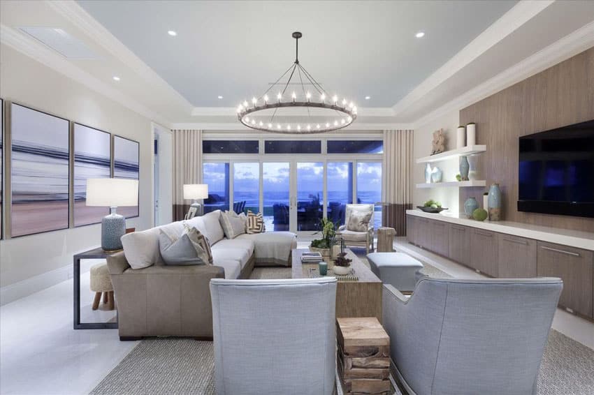 Don’t be afraid to mix and match different styles of furniture, but be sure to choose pieces that complement each other in terms of color, scale, and texture. A large sectional sofa can be a great option for a large living room, providing ample seating for family and guests. Consider adding a coffee table, end tables, and accent chairs to complete the seating arrangement. A media console is also essential for housing your television and other electronic equipment. Think about incorporating a variety of seating options, such as sofas, armchairs, benches, and ottomans, to create a comfortable and versatile space.