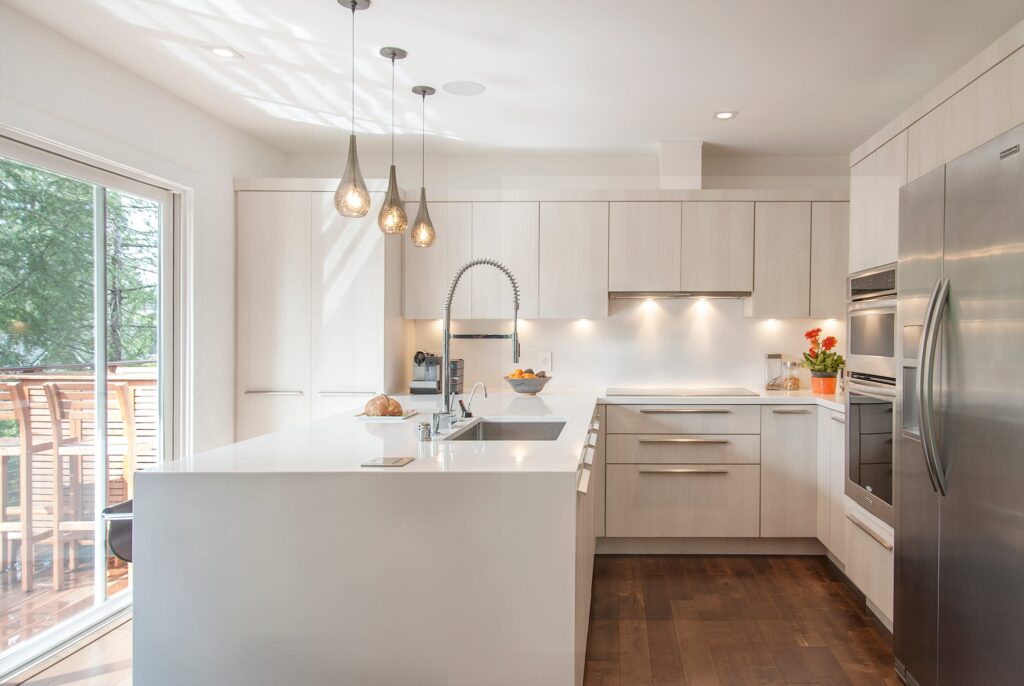 Select materials and finishes that complement your existing kitchen décor and reflect your personal style. Consider the durability, maintenance requirements, and aesthetic appeal of various options, such as granite, quartz, marble, wood, and laminate. Don’t be afraid to mix and match materials to create a unique and visually appealing design.