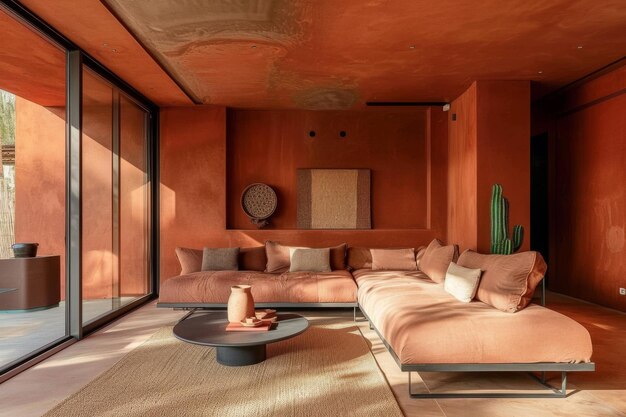 Premium Photo Coral or terracotta living room accent sectional sofa