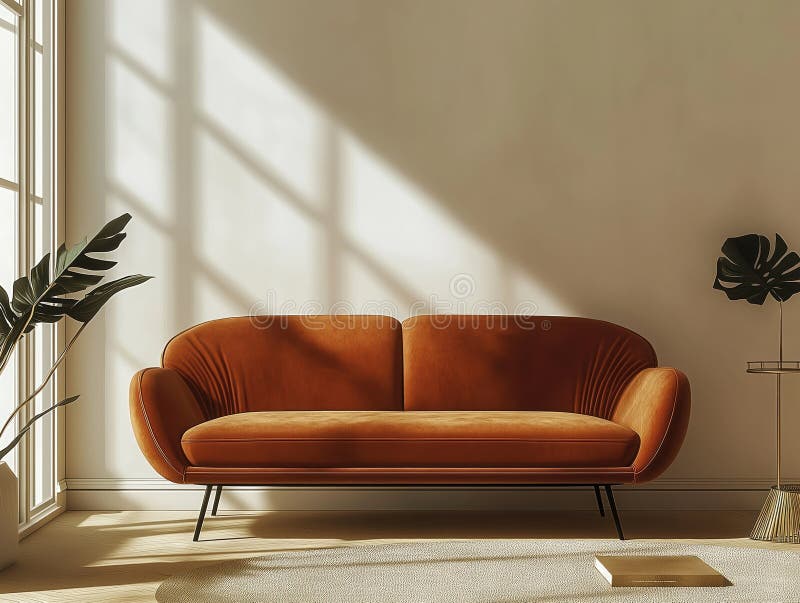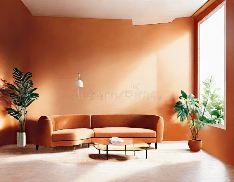 Modern Terracotta Sofa in Warm Living Room Stock Illustration