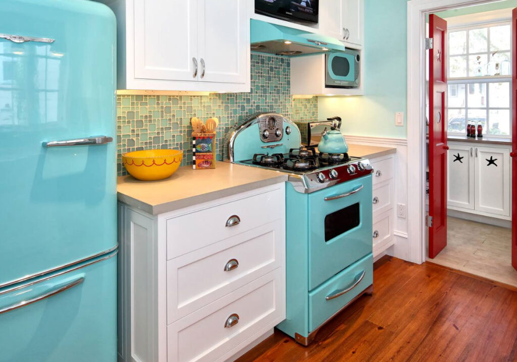 • Retro refrigerators: Iconic refrigerators with rounded shapes and vibrant colors are a must-have for a 1950s-inspired kitchen.