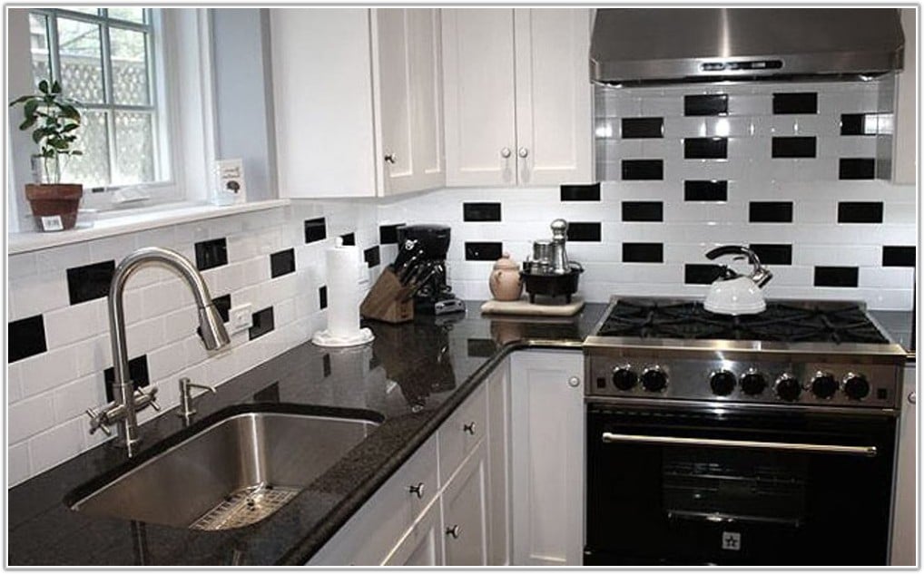 Your backsplash is a great opportunity to add texture, color, and personality to your black and white kitchen.
