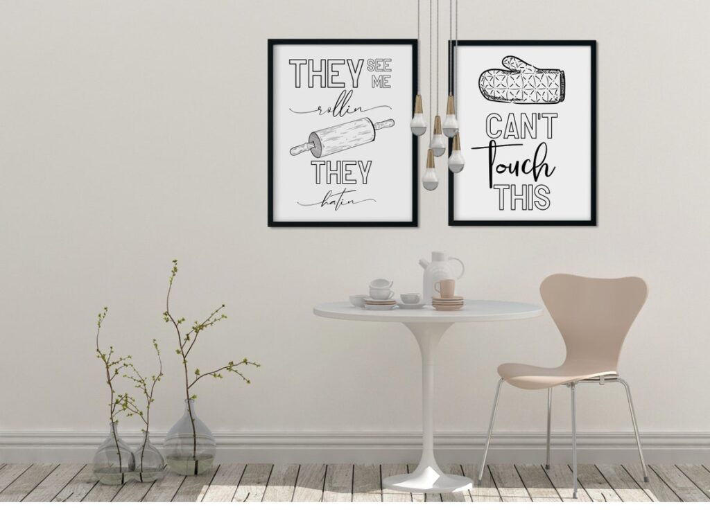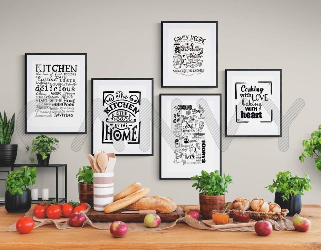 - Artwork: Hang artwork that complements the overall style of your kitchen. Black and white photography, abstract paintings, and graphic prints are all good options.