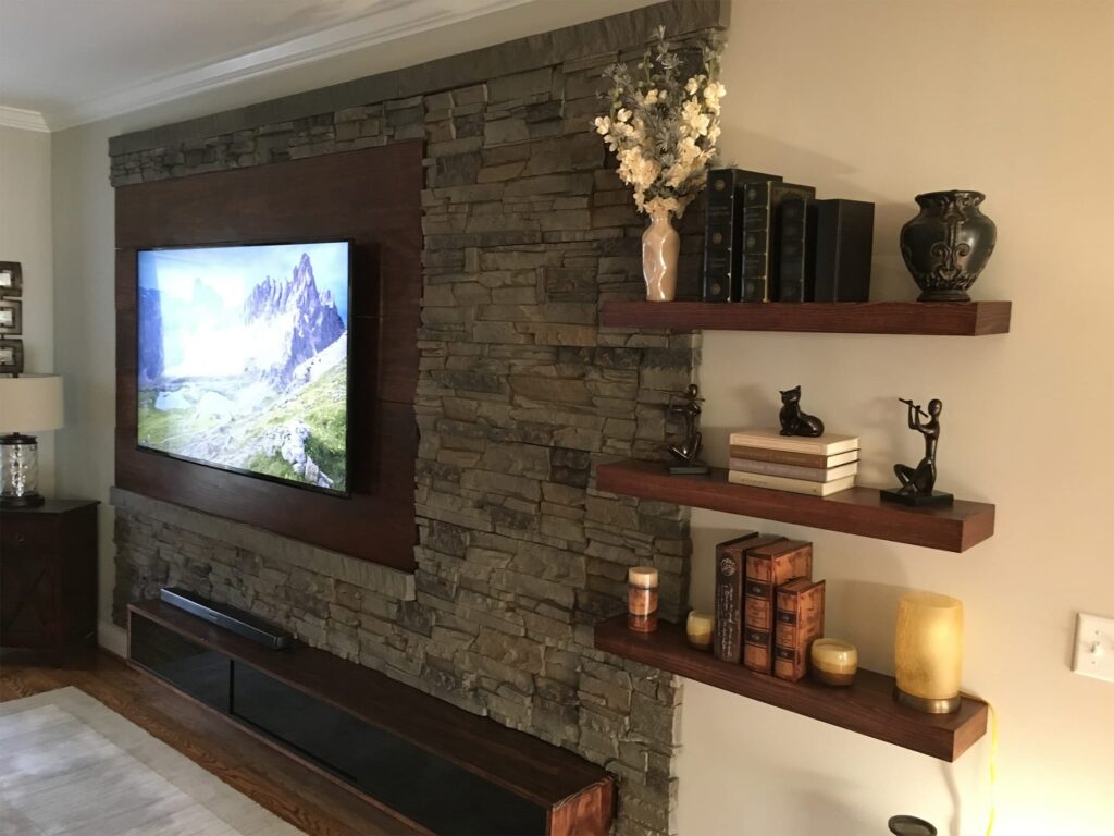 Stone or brick accent walls add a natural and textural element to your living room. They can create a rustic, industrial, or modern aesthetic, depending on the type of stone or brick and the overall design. Faux stone or brick panels are more budget-friendly and easier to install.