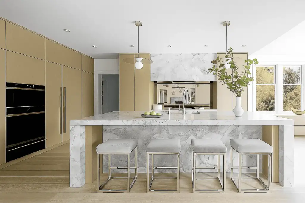 The choice of countertop material is crucial for the success of your waterfall island. It will not only affect the overall aesthetic but also the durability, maintenance, and cost of the island. Here’s a rundown of some of the most popular material options: