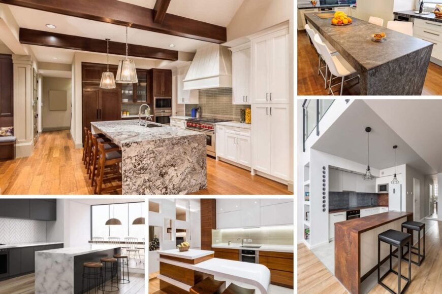 Waterfall islands are incredibly versatile and can be adapted to suit a wide range of kitchen styles. Here are some popular waterfall island styles:
